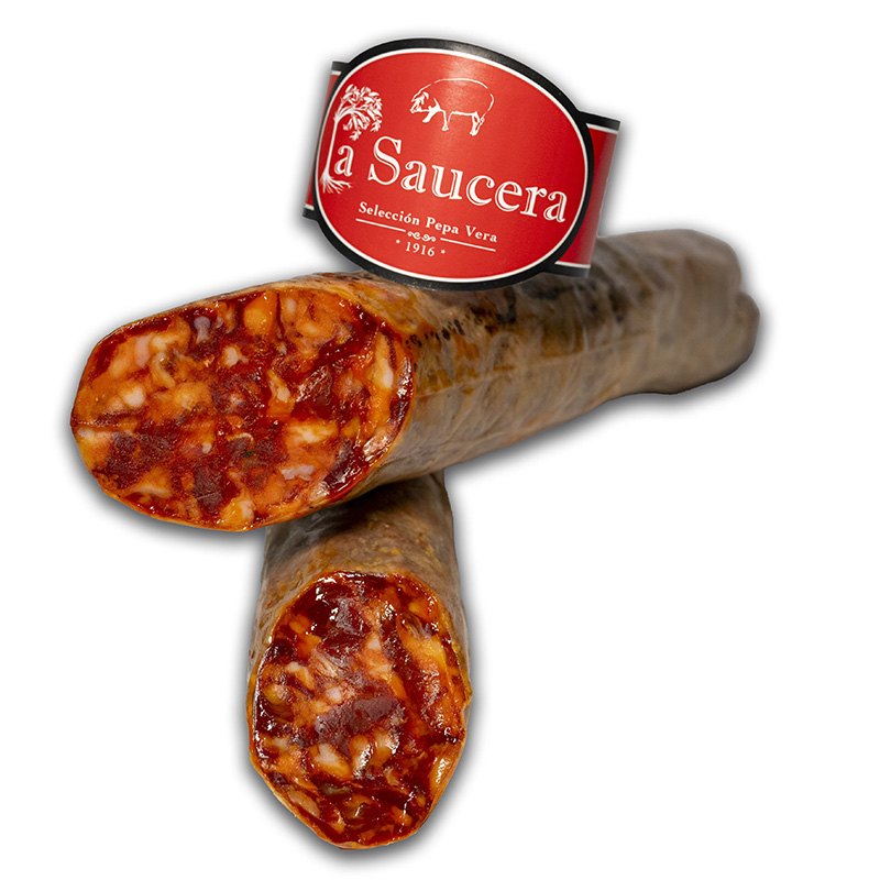 El Chorizo Cular Extra Selección La Saucera es elaborado con el mismo cuidado y esmero de siempre por nuestros maestros charcuteros, utilizando magros seleccionados procedentes de cerdos criados en libertad. Estos animales son manejados por expertos con una estricta alimentación natural, garantizando así un producto auténtico y de excepcional calidad, aunque fuera de la norma establecida en el R.D.4/2014.